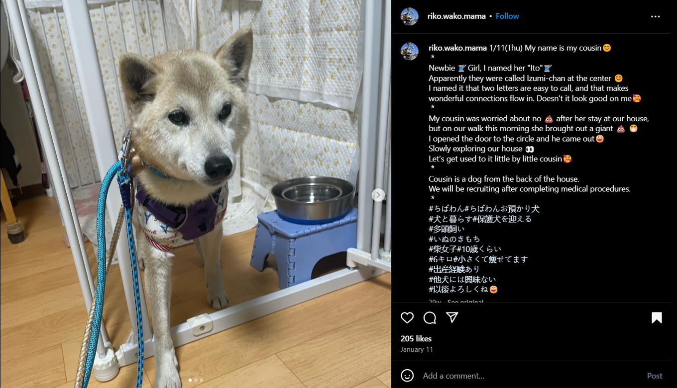 Izumi's chance came when she was fostered by a caring family who renamed her "Ito," believing that the two-syllable name would be easy to call and symbolize the beautiful connections they hoped she would form. During her time with the foster family, Ito quickly adapted to her new environment. Her playful antics and exploration of her new home delighted her caretakers, who watched her grow more comfortable each day, especially after she started to settle in and explore with confidence.